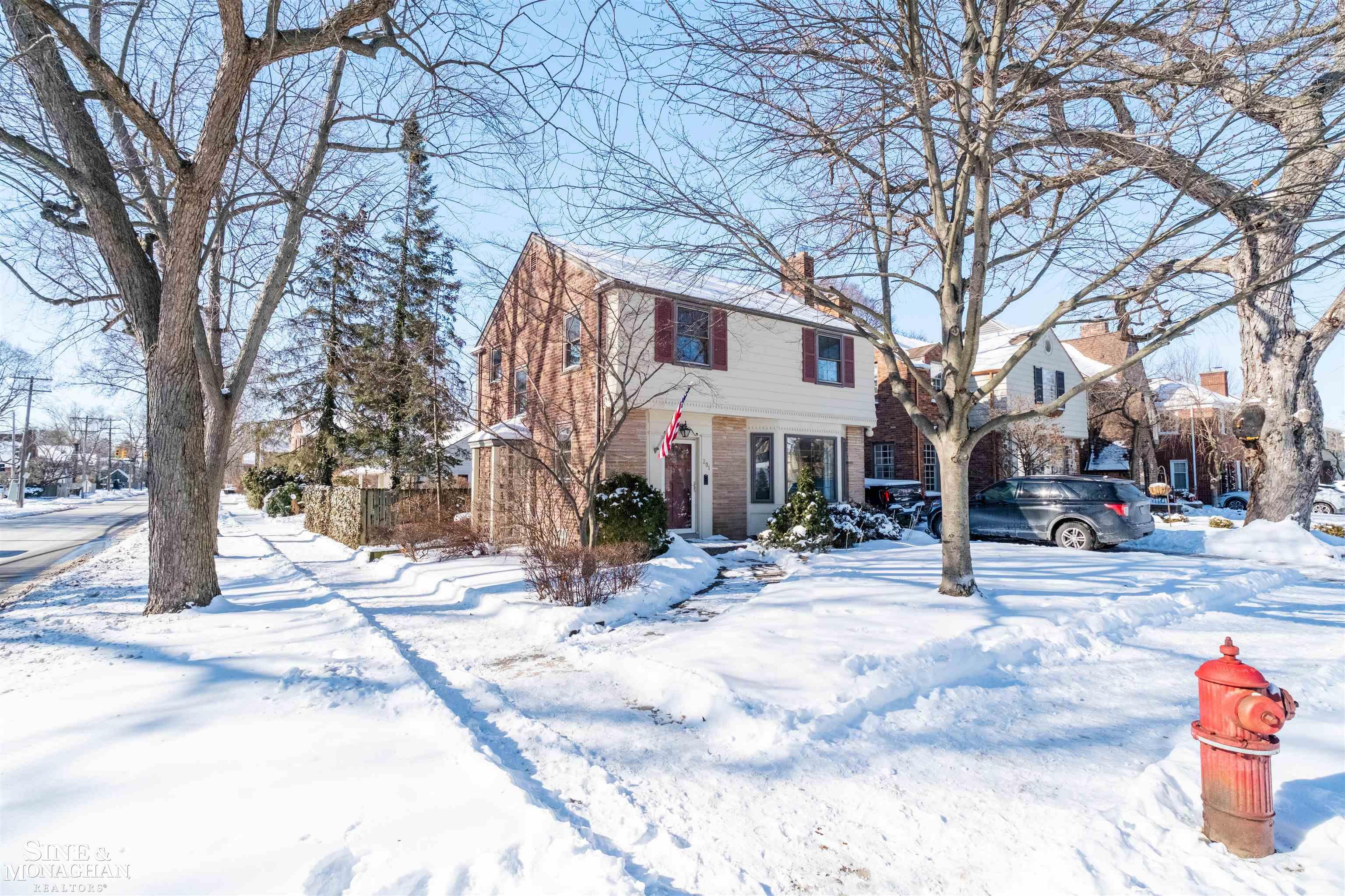 Set on a quiet, tree-lined street in the heart of Grosse Pointe Farms, this charming three-bedroom Colonial blends timeless architecture with thoughtful modern updates. Sunlight streams through newer windows, highlighting gleaming hardwood floors and soft neutral décor that make every room feel warm and inviting. At the center of the home, an updated kitchen features crisp cabinetry, solid-surface counters, and stainless-steel appliances—an ideal gathering spot for weekday breakfasts or weekend baking. The adjacent dining room flows easily into a comfortable living room anchored by a classic fireplace, creating the perfect backdrop for family celebrations and cozy nights in. Upstairs, three spacious bedrooms share a beautifully maintained full bath, while a convenient half bath serves the main floor. The finished basement adds valuable living space—ideal for a playroom, home office, or fitness area—with plenty of storage to keep life organized. Outside, a generous yard offers room for kids or pets to play, complemented by a rare three-car garage providing ample parking and workspace. Families love this location—Richard Elementary is just across the street, and you’re moments from parks, shops, restaurants, and Lake St. Clair. Here, daily life feels both connected and peaceful, with everything you need just a short walk away. Imagine yourself living here—schedule your private tour of 201 McMillan today.