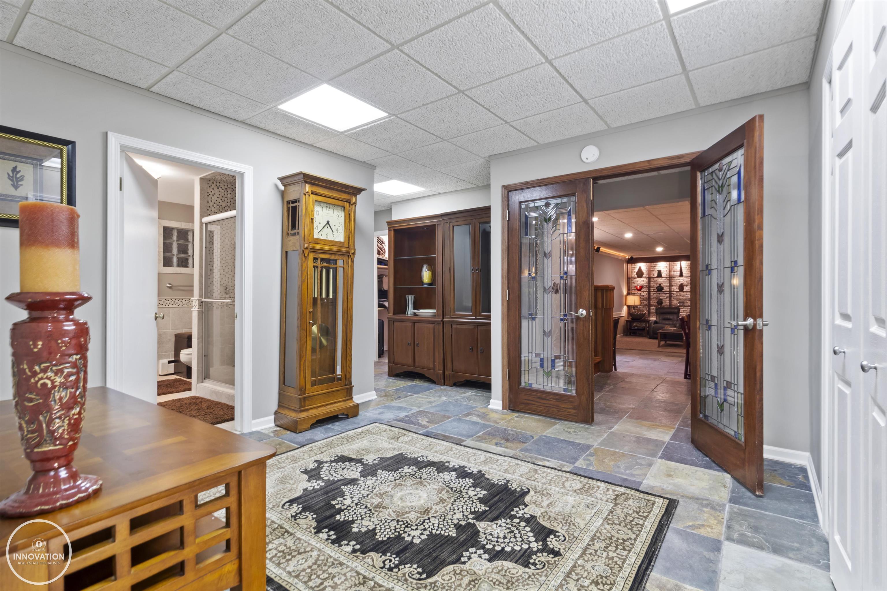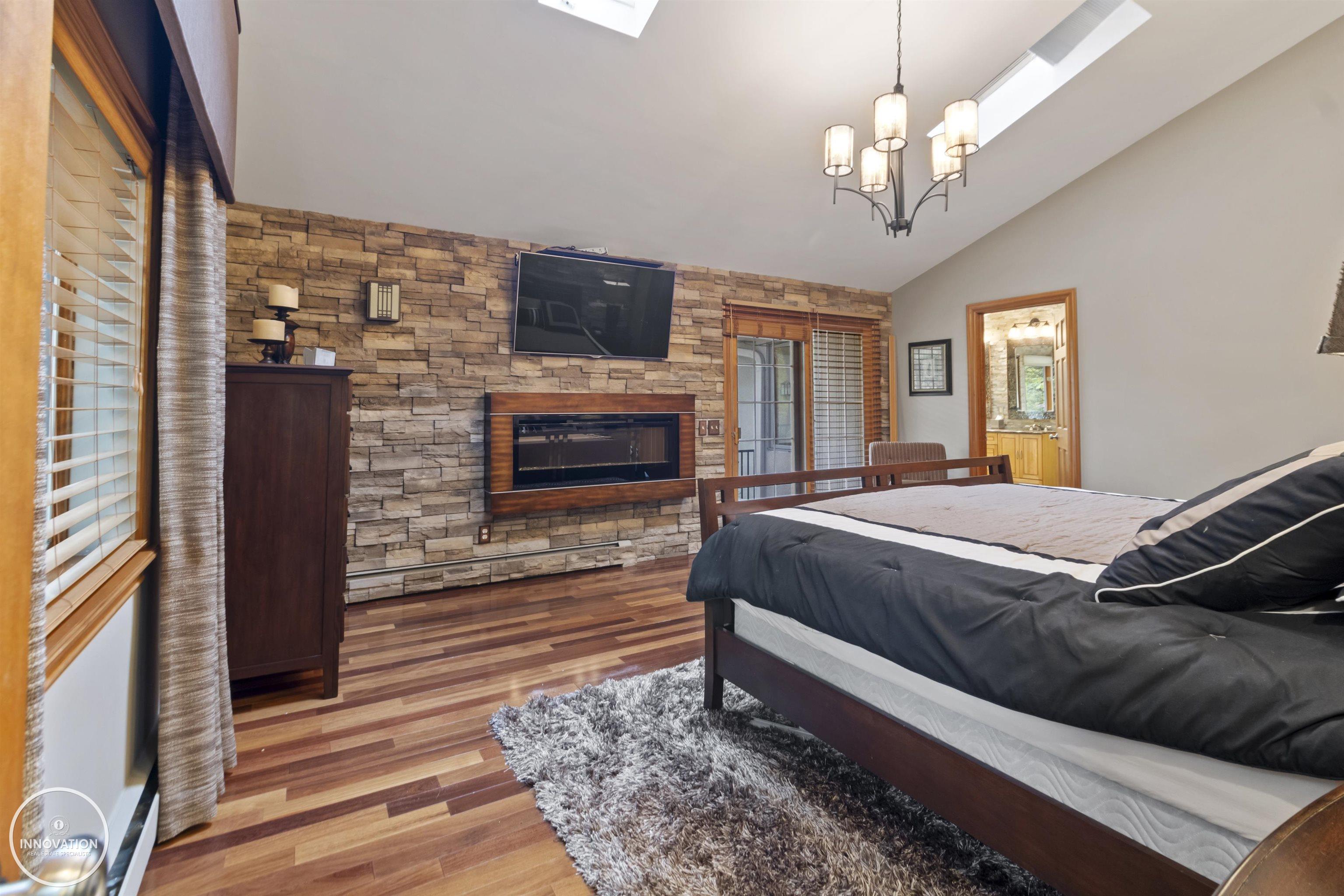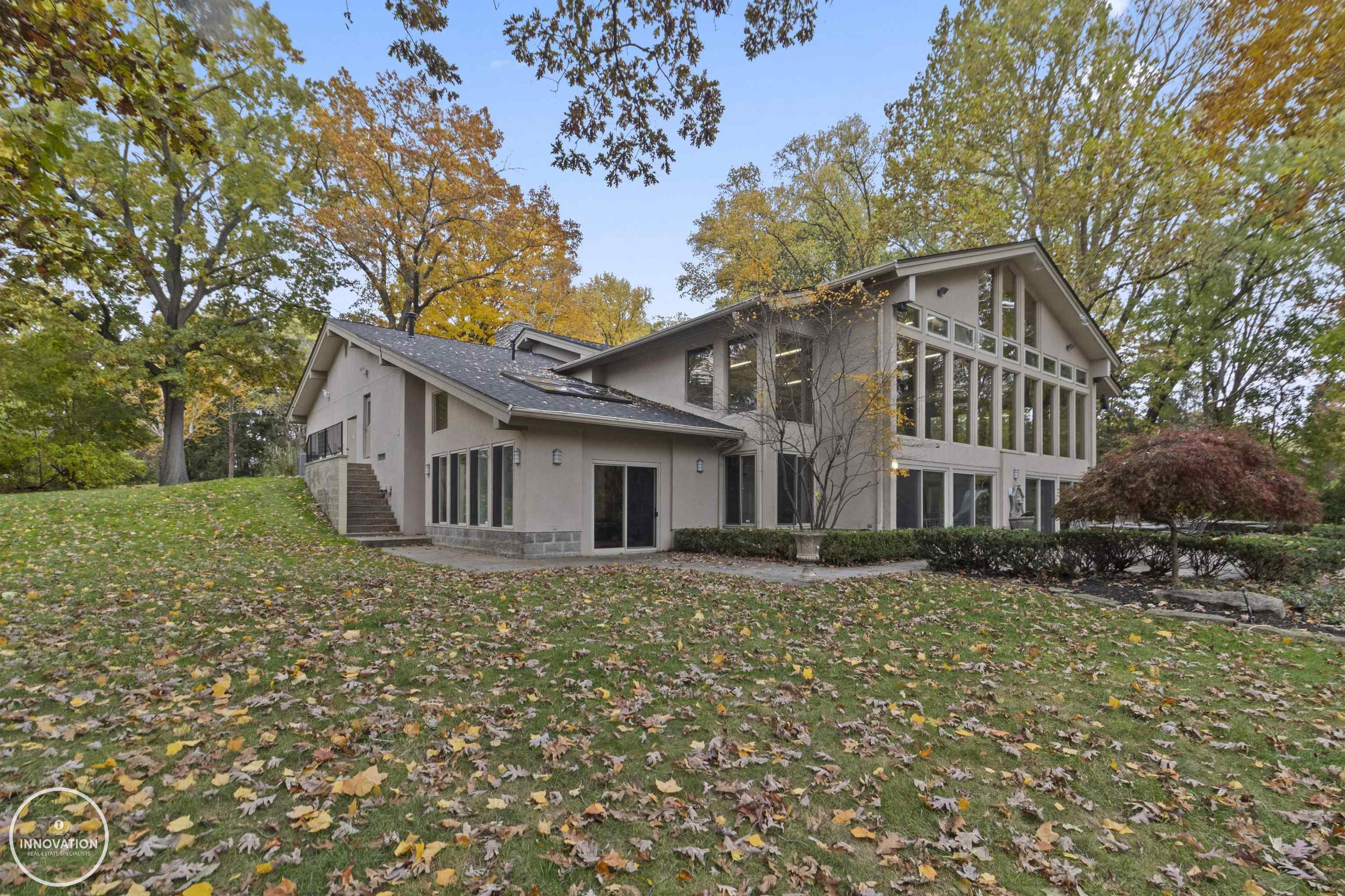 Frank Lloyd Wright Inspired Estate on the Clinton River – 7,700+ SqFt Home on 5 Private Acres! Tucked away behind a gated entrance on 5 private wooded acres along the scenic Clinton River, this extraordinary 7,700+ SqFt residence blends timeless design with modern luxury. Inspired by Frank Lloyd Wright’s organic architecture, this home showcases exquisite woodworking, natural stone accents, and warm natural wood floors throughout. The open-concept living area is filled with natural light and stunning views of the surrounding forest and river. Featuring three natural-stone fireplaces, a gourmet kitchen with a large island and snack bar, and striking architectural details, every space feels both elegant and inviting. Enjoy year-round resort-style living with an amazing indoor pool area boasting 25+ foot ceilings, a 14' x 35' pool with slide, jacuzzi, and walls of glass overlooking nature. Additional amenities include a home gym, family/recreation room with projection TV, a custom stone bar with illuminated shelving, and a wine cellar—perfect for entertaining! The primary suite offers a private retreat with its own fireplace, luxurious bath, and deck with balcony views. One of the five bedrooms has been converted into a spacious walk-in closet but can easily be returned to a fifth bedroom if desired. Outdoors, the fenced yard provides peace and privacy, while the property’s two additional vacant, buildable parcels offer endless potential for future expansion or development. This one-of-a-kind riverfront estate combines architectural distinction, natural beauty, and unparalleled amenities—an exceptional opportunity for those seeking privacy, space, and style.